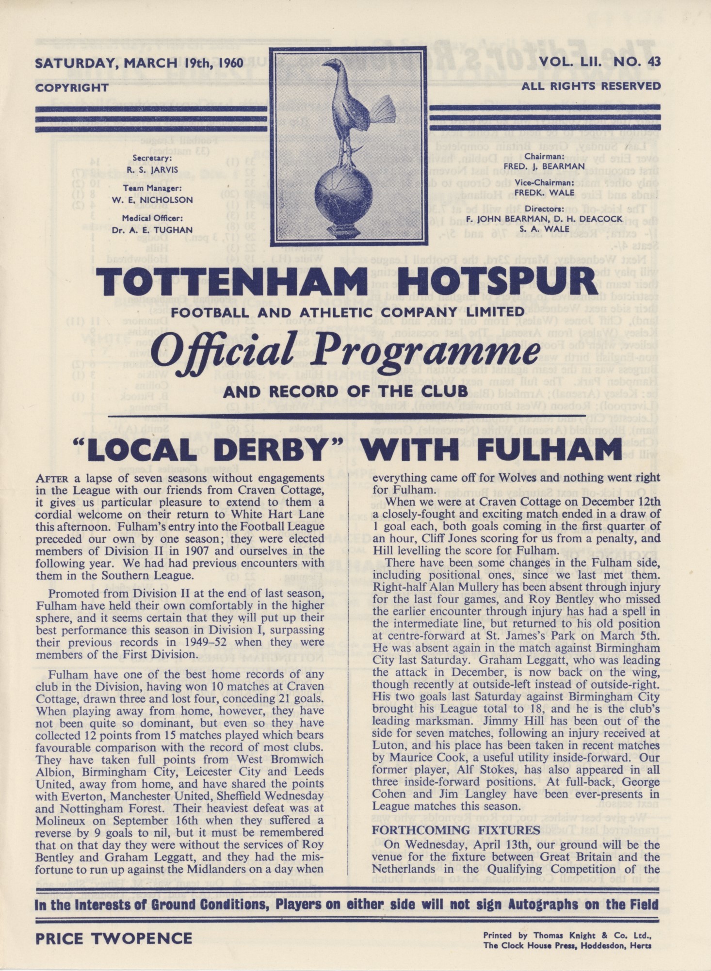 TOTTENHAM HOTSPUR V FULHAM 1959-60 FOOTBALL PROGRAMME