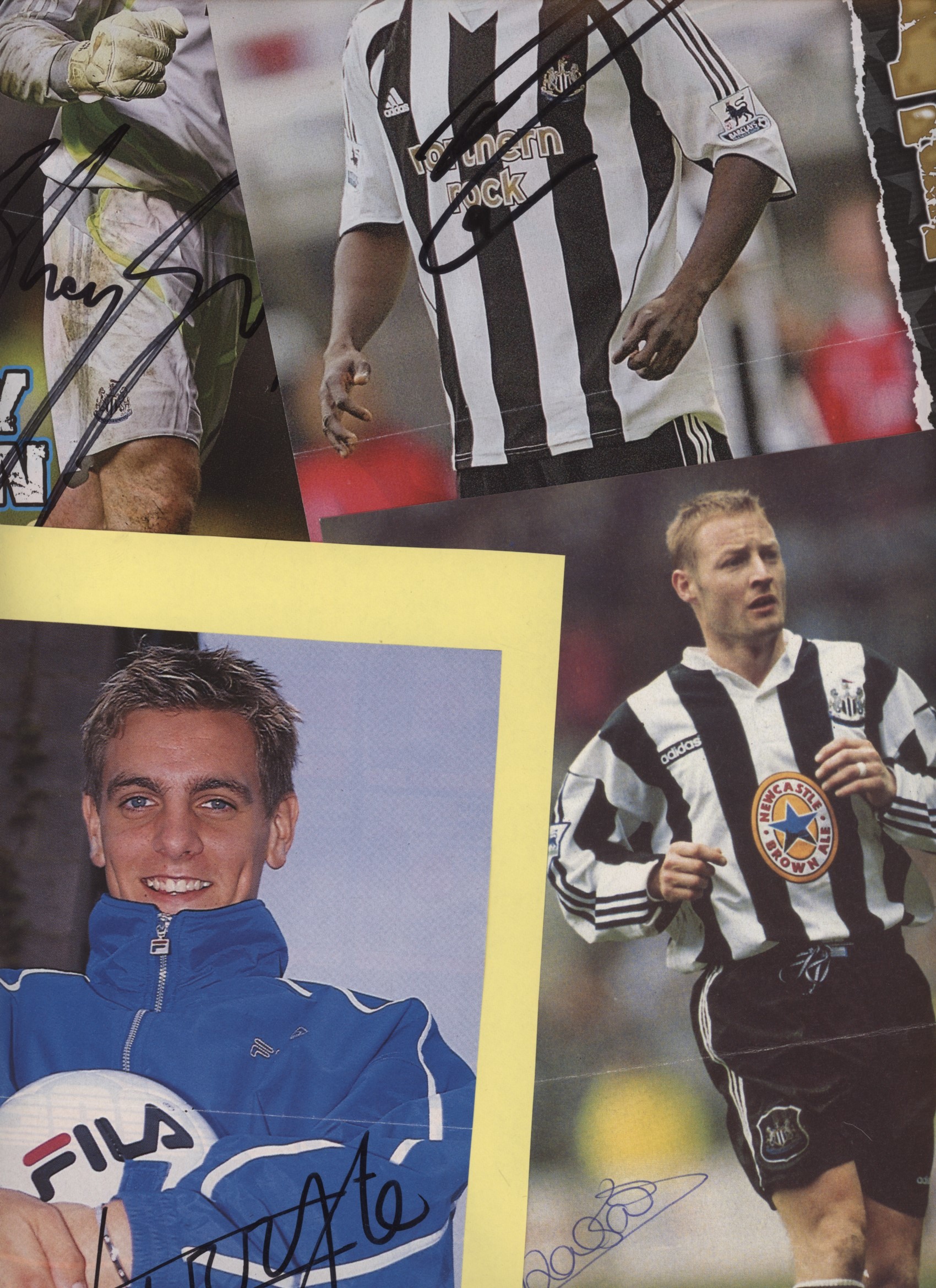 Second edition. Large 4to. 440pp. Lavishly illustrated, part-colour. Dust-wrapper, rubbed to edges. Good condition. The autographs of 40 Newcastle United players have been cut and slipped in or laid down inside the book - many full page colour magazine photos. Signed larger photos include Robson, Shoulder, Gowling, Roeder, Brock, Watson, Beresford, Clark, Lee, Ferdinand, Batty, Woodgate, Dyer, Given, Hislop, Speed, Solano, Duff and more. Most are loose and could be displayed separately. A full list of the autographs can be seen in the images.