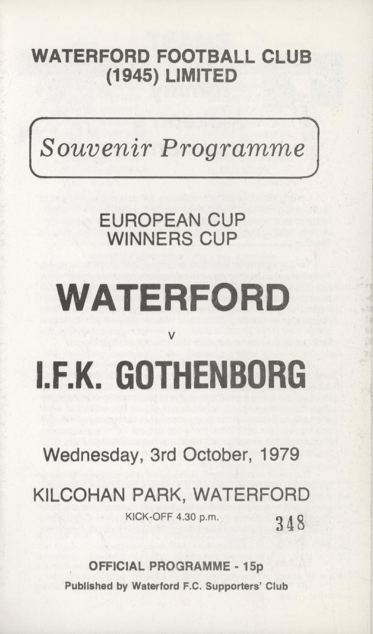 WATERFORD V IFK GOTENBORG (ECWC) 1979-80 FOOTBALL PROGRAMME