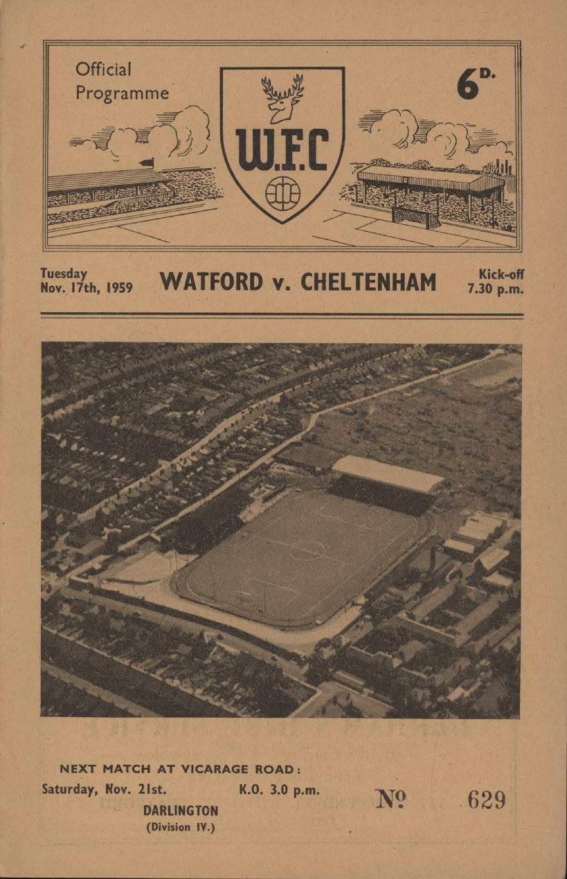 WATFORD V CHELTENHAM TOWN 1959-60 FOOTBALL PROGRAMME
