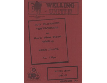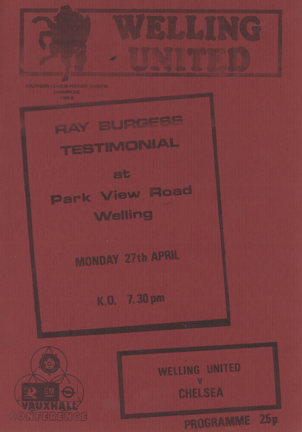 WELLING UNITED V CHELSEA (RAY BURGESS TESTIMONIAL) 1985-86 FOOTBALL PROGRAMME
