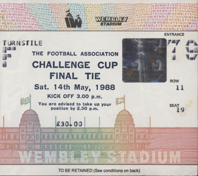 Original ticket for the match at Wembley on May 14th 1988.