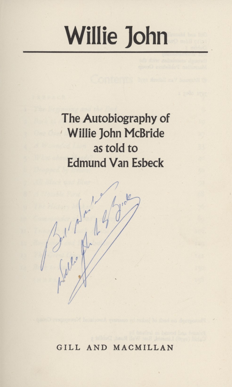 Willie John McBRIDE (as told to Edmund Van Esbeck)