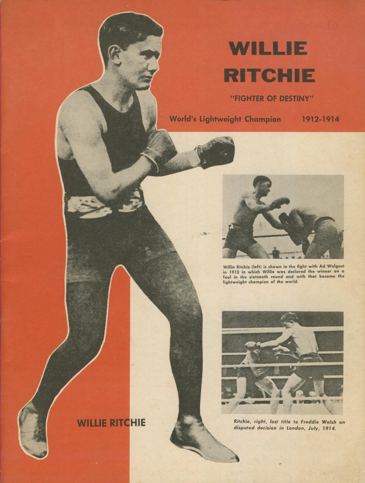 Biography of boxer Willie Ritchie, the World lightweight champion from 1912 to 1914. Includes a contribution from Nat Fleischer and many reproduced photographs. The author, Billy Mahoney, was also a boxer.