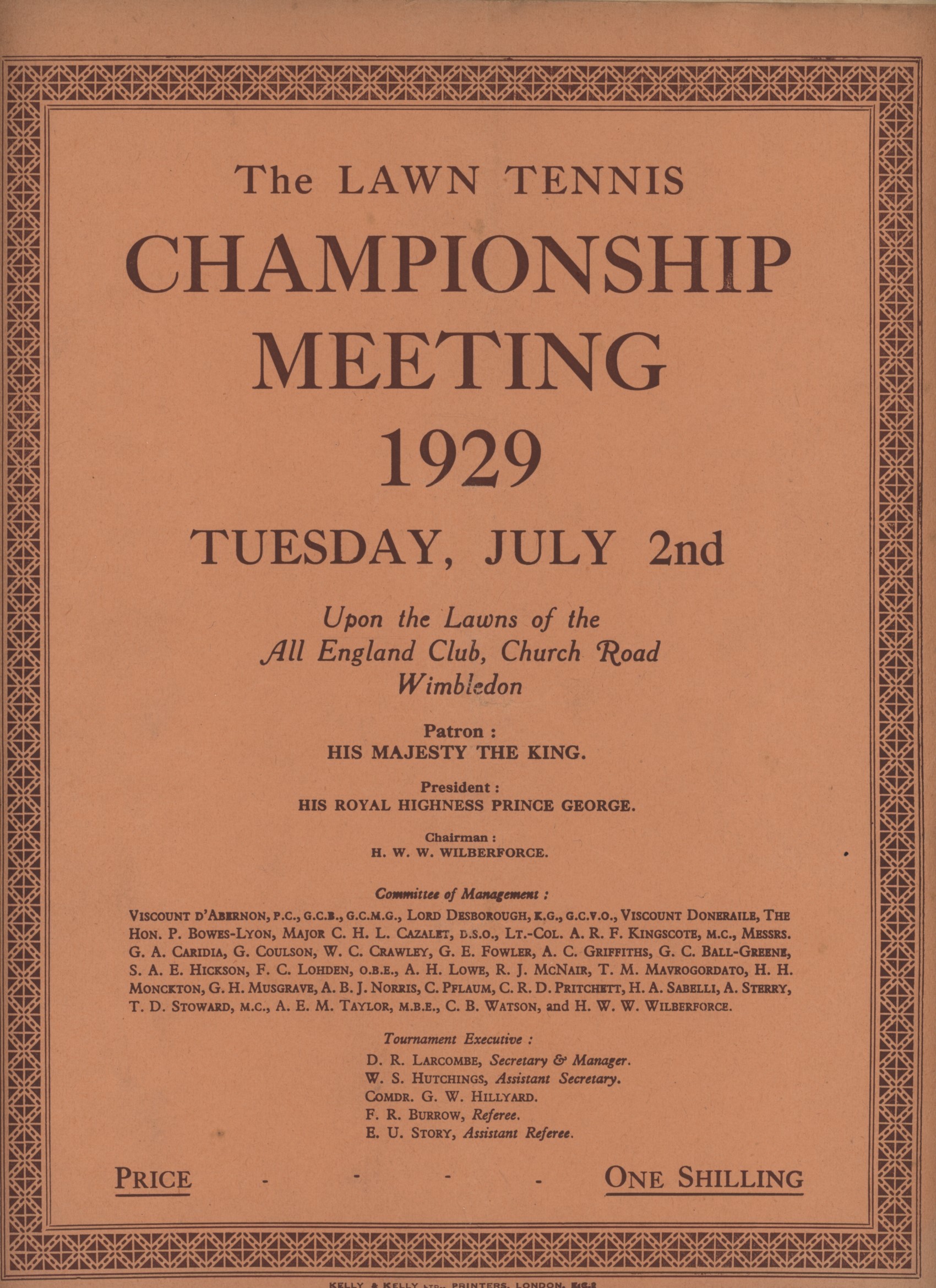 Other Sports » Tennis » Tennis Programmes » Wimbledon » WIMBLEDON CHAMPIONSHIPS 1929 TENNIS PROGRAMME