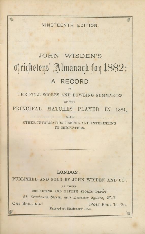 Cricket » Cricket Books » Wisden Cricketers' Almanacks » Wisden » Wisden 1880-99 » Rebound Wisdens » WISDEN CRICKETERS' ALMANACK 1882