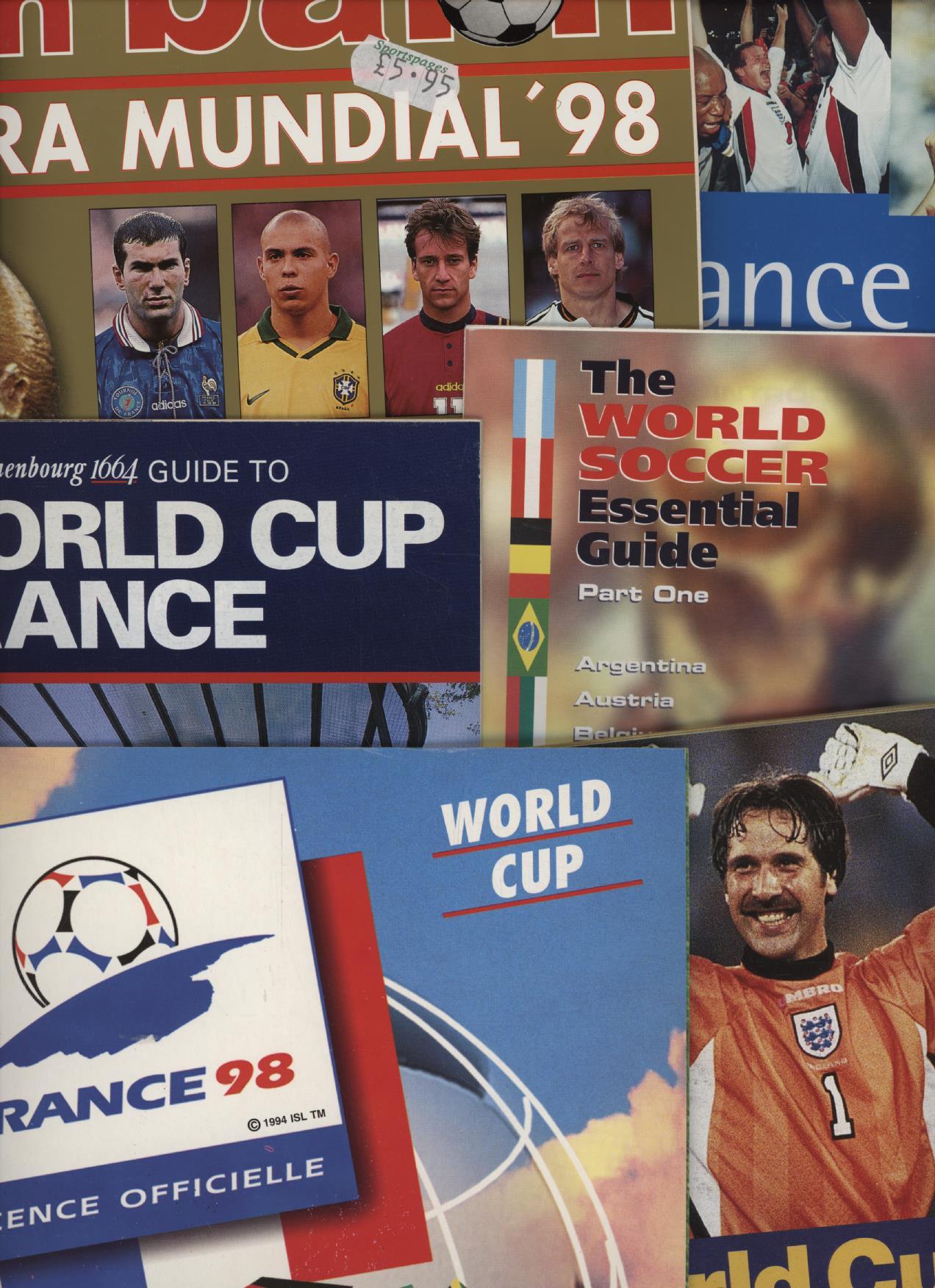 A nice collection of publications relating to the football World Cup of 1998 in France, including the Total Football essential guide, supplements from the Guardian and Times newspapers and an unused Panini sticker album.