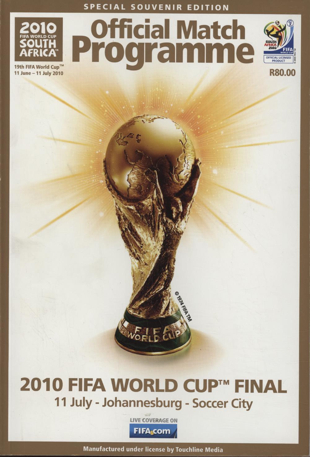 Official programme for the 2010 World Cup Final held in South Africa on 11th July 2010.