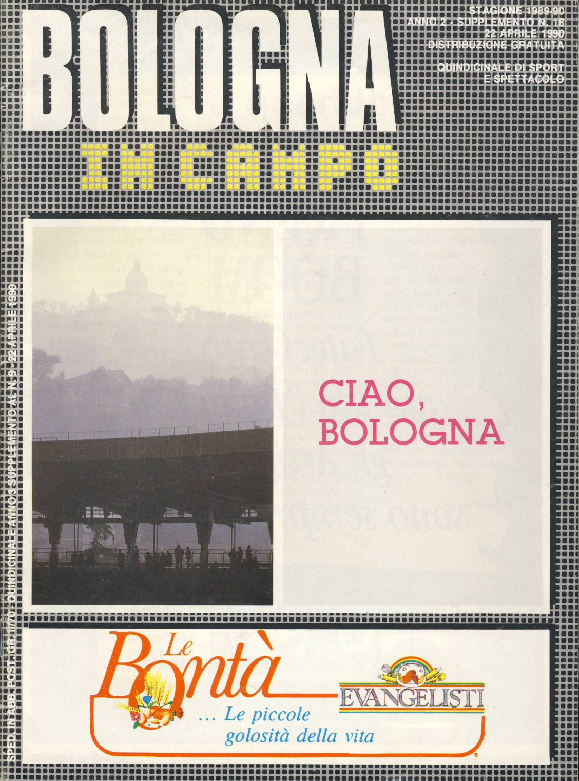 Official Italy 1990 World Cup "Supplemento N. 18" detailing the matches to be played in Bologna and other events being staged during the World Cup. Titled "Bologna in Campo".