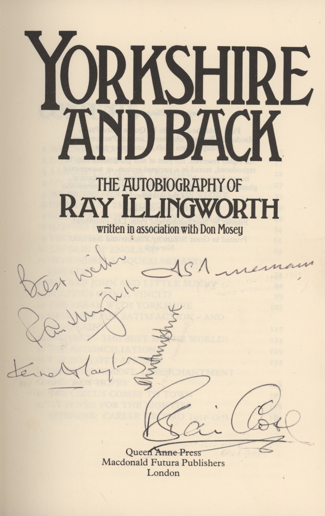Cricket » Cricket Books » Cricket Biographies » YORKSHIRE AND BACK: THE AUTOBIOGRAPHY OF RAY ILLINGWORTH (MULTI SIGNED)