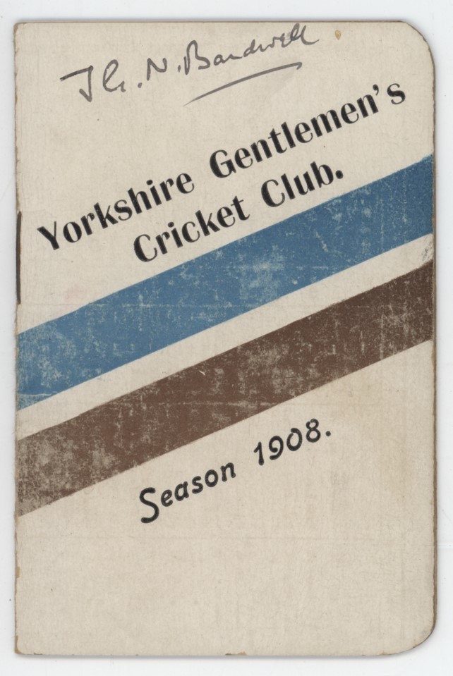 Fixture card and list of members for the Yorkshire Gentlemen's Cricket Club, season 1908.