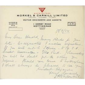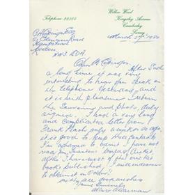 Single sheet letter written in response to a request by an autograph collector. Sent from Harrogate Cricket Club. Very good condition.