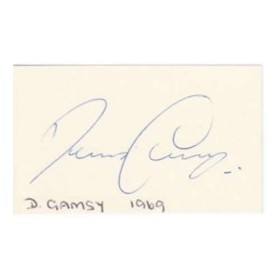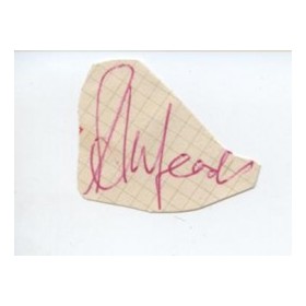 Signed in blue in on white sticky label (stuck to paper). Very good.