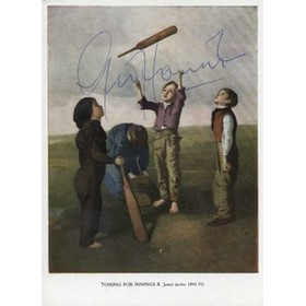 Cricket autograph. Signed in black ink to small irregular piece and laid down to A4 sheet with short biography. In good condition.