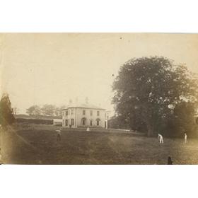 An original sepia photograph of a game of cricket being played in front of a large country house. A handwritten caption to the reverse identifies the house as Pangbourne Rectory and the date as late 1850s. 13