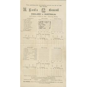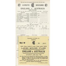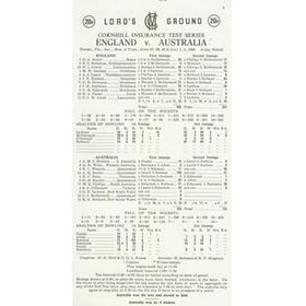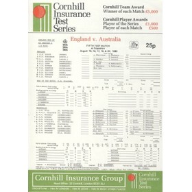 Lord's. July 2-7, 1981. Match drawn, but notable for Botham's pair and subsequent replacement as capatin by Brearley - the rest is history. 24 x 12.5cm. Fully printed. Very good.