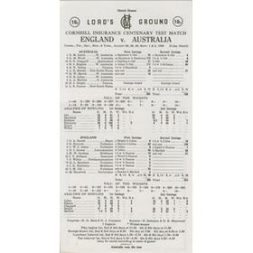 Lord's. August 28 - September 2, 1980. Centenary Test match. 24 x 12.5cm. Scores not printed. Very good.
