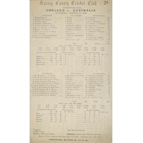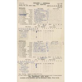 Oval. August 27 - Sept. 1, 1981. Match drawn as England hang on to win one of the most extraordinary Test series 3-1. 30 x 21cm. Part printed. Central folds. Good condition.