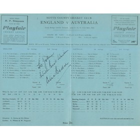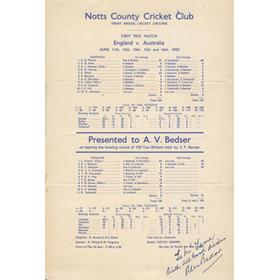 Trent Bridge. June 18-22, 1981. Australia won the opening match of the series by 4 wickets. 32 x 20.5cm. Part printed. Crease across top edge and central horizontal fold. Good condition.