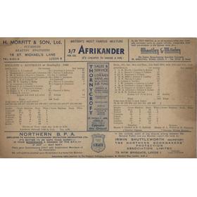 Official cricket scorecard. Lord's, August 6-8 1945. Match drawn after centuries for Keith Miller and Washbrook. Part-completed in pencil. Good condition.