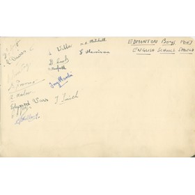 Large album page, signed by 15 players from the Edmonton Boys team of 1947. The players include Griffin, Davies, Sontag, Prosser, Marlow, Vass, Holland, Webber, Cook, Mowforth, Smith, Mitchell and Harrison. 25