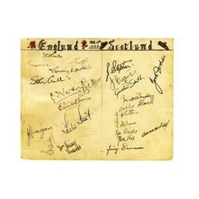 Autograph sheet containing the signatures of both teams that played at Wembley on February 19th 1944. Under a crude, hand-designed title are the England players HS Carter, L Scott, J Mercer, T Lawton,