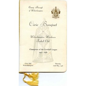 Banquet menu for the diamond jubilee celebrations of the Football League, established in 1888. 8vo. 12 leaves with tabs. Dinner menu, messages of congratulations from Archbishop of Canterbury, Prime Minister