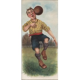 Delighful Victorian greetings card with a footballer's leg and boot protruding throught the card above a verse of poetry. 7 x 11cm. Penned greeting inside dated 1896. Edges a little foxed but generally