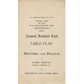 Fold-out table plan for a dinner and dance held by Arsenal FC in the evening after the 1950 FA Cup final on April 29th, 1950. Guests included many of Arsenal's greats, plus the full playing team on the