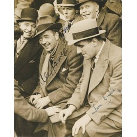 Original Press photograph of Alex James sitting in a crowd with the Chelsea players Jacky Crawford and Sam Dudley. Signed in ink by James, Crawford and Dudley. 19 x 15cm. Press stamp to reverse, but