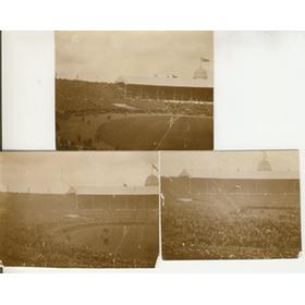 A unique sequence of three original sepia photographs taken at the first Wembley Cup Final between Bolton and West Ham in 1923. This was the famous 'White Horse' Final when huge numbers turned up and the