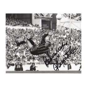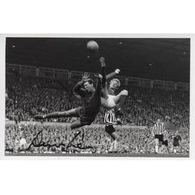 Colour Press photograph of Hughes lifting the European Championship trophy. Signed by Hughes in ink across the front. 30 x 20 cm. Fine condition.