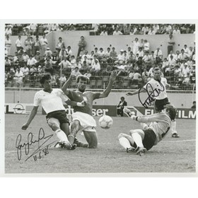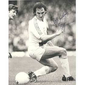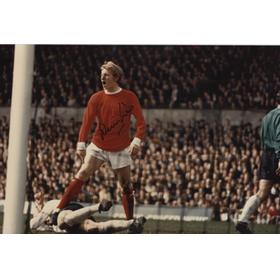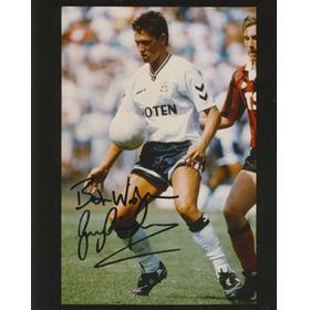 Full colour photo of Bryan Robson in action for England. Signed 'Best wishes Bryan Robson'. 24x18cm. Fine condition.