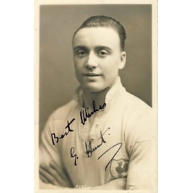 Football postcard. Real photograph of Hunt, who played for Spurs from 1930-37. He also played for Chesterfield, Arsenal, Bolton and Sheffield Wednesday. Postally unused. Very good. Nicely signed in ink