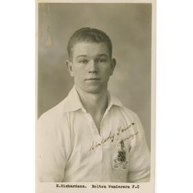 Football postcard. Real photo by G.E. Willis of Bolton. Richardson was on Bolton's books from 1933-35 before forging a long career with New Brighton. Postally unused. Very good. Signed nicely across the