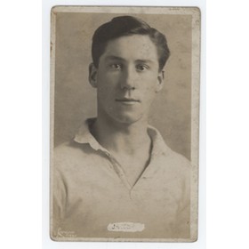 Football postcard. Real photograph, sepia tinted, of the Welsh International Jack Nicholls. Postally unused. In very good condition. Nicholls was the nephew of the great Welsh rugby player, Gwyn Nicholls.