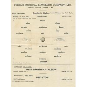 Official football programme for the match played at Stamford Bridge on April 20th 1946. Single folded sheet. Lightly creased with split to lower spine. Good condition.