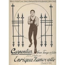 Musical score for a "Gran Tango de Salon", presumably based on the life of Georges Carpentier, and performed on the piano by Enrique Zanovello. Carpentier is seen in fighting pose to front. Signed on the