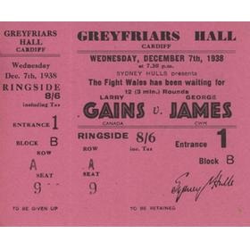 Original ringside Staff ticket for the Lightweight Championship of Great Britain fight at Harringay Arena on February 23rd, 1939. This was the first ever live televised boxing match, shown live by the
