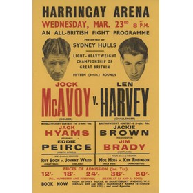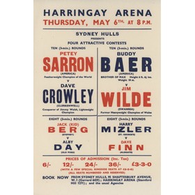 Original flyer for the fight held at Harringay Arena on November 3rd, 1937.  23 x 15cm. Fine condition. This came directly from the collection of Sydney Hulls, the well-known boxing journalist and