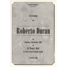 Original boxing flyer for the fight held at Dudley Town Hall on 7th April 1977. Tony Sibson and Danny McAlinden were also on the card. The flyer is a little too large for our scanner. 36 x 23cm. Good