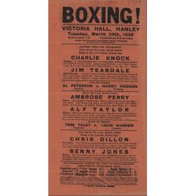 CHARLIE KNOCK V JIM TEASDALE 1938 (HANLEY) BOXING FLYER