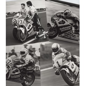 A set of four promotional photographs, published by Rothmans, of Wayne Gardner, Eddie Lawson and Michael Doohan on their bikes during the 1989 season. The fourth photo is of the three racers talking on