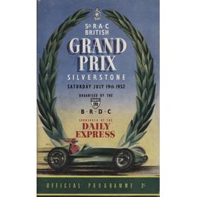 Official programme for the British Grand Prix held at Silverstone, 19th July 1952. Paperback. 21 x 13cm. 80pp. Illustrated covers, lightly rubbed and creased. Lap charts inside, partly completed in pencil.