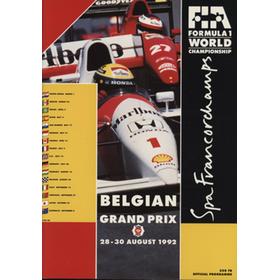 Official programme for the Belgian Grand Prix held at Spa on the 30th August 1992. Michael Schumacher won his first of 91 Grand Prix wins. Very good condition.