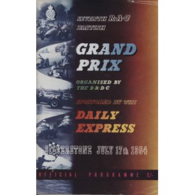 Official programme for the R.A.C. British Grand Prix held at Silverstone, 17th July 1954. The race was won by the Argentinian driver, Jose Gonzalez in a Ferrari, with his teammate Mike Hawthorn second.