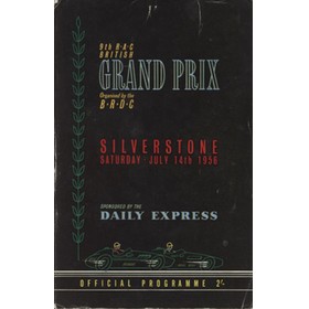Official programme for the R.A.C. British Grand Prix held at Silverstone, 14th July 1956. The race was won for Ferrari by the Argentinian driver, Juan Manuel Fangio, who subsequently