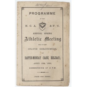 Original programme for an athletics meeting organised by the Newport County Athletic and Football Club (N.C.A. & F.C.) held on the club grounds on April 10th, 1882. Competitors included Charlie Newman