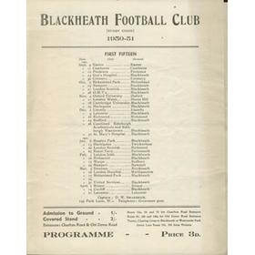 Played at Blackheath, 11 Dec 1948. Edges frayed. Light fold. Team changes in pencil to centre pages. Good.
