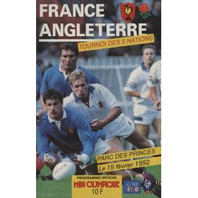 Official programme for the match at Parc des Princes, 15 February 1992. Rubbed to front cover with central vertical fold through all pages. Fair/good condition.